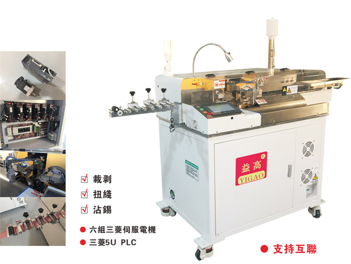 2、采用日本三菱控制系統(tǒng),日本三菱     PLC控制器配合全伺服馬達(dá)控制,使送線、裁線、剝皮、扭線、沾錫等位置更為精準(zhǔn)穩(wěn)定,采用全進(jìn)口元件,使設(shè)備品質(zhì)更有保障、運(yùn)行更為持久、順暢、穩(wěn)定。